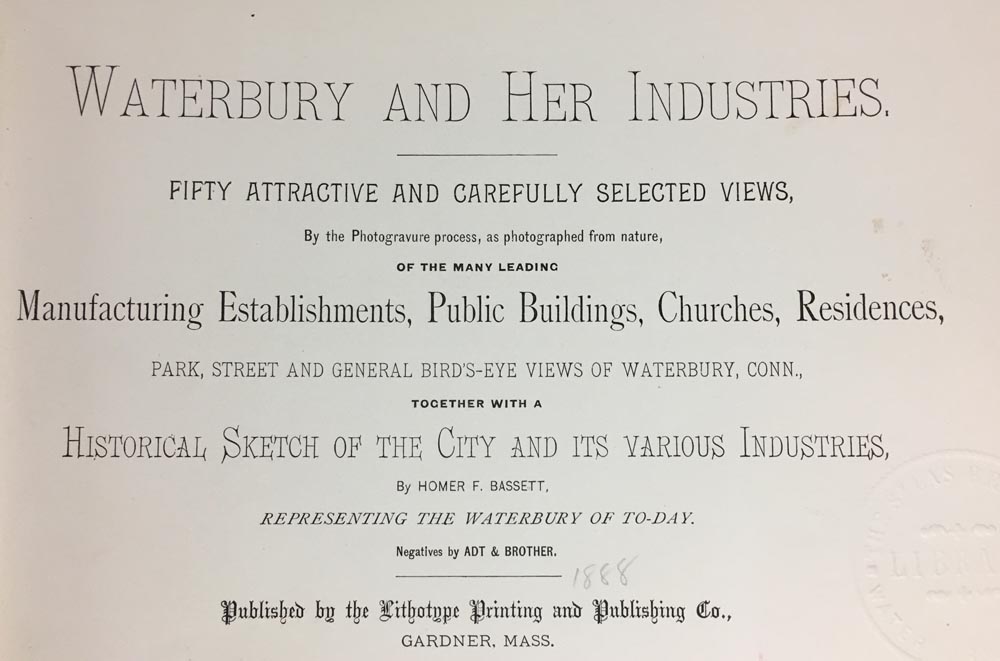 Bassett’s writing ventures were not limited to scientific journals. One of his earliest works was a poem, “Lines to the Comet,” inspired by the Great Comet of 1861 and published in the Waterbury American newspaper on August 2 that year. The comet was visible for nearly three months that summer, passing so close to Earth that the planet was actually inside the comet’s tail for two days. In 1889, Bassett published an illustrated history of Waterbury and the city’s leading industrial companies. He was also a contributor to Anderson’s three-volume History of Waterbury, published in 1896.