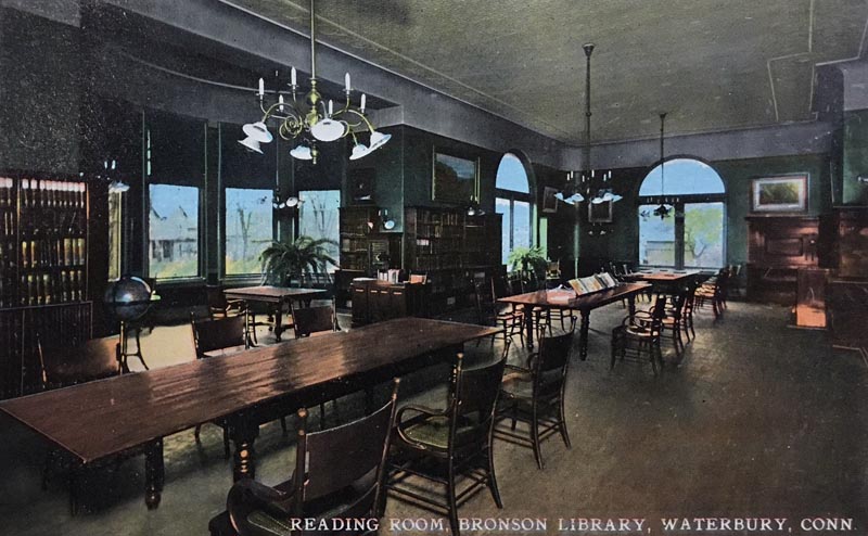 Homer Bassett ran the Silas Bronson Library for three decades, overseeing tremendous changes to Waterbury’s public library. Public libraries in general were changing by the turn of the century, expanding their holdings to encompass more than just books. As Bassett himself commented during the 1890s, “It will be seen that the Library is not merely a collection of books but in common with many others has drifted away from the old idea and the addition of collections of various kinds of objects are being made that greatly increase its usefulness.”